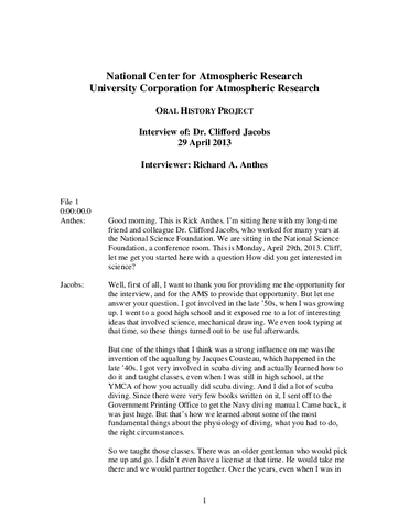 Transcript of Oral History Interview with Clifford A. Jacob
