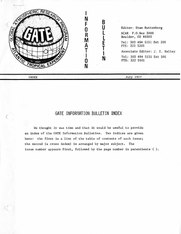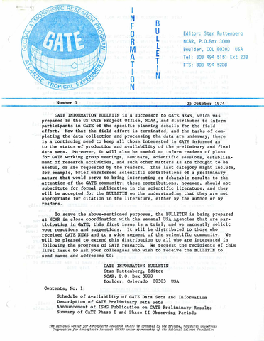 Global Atmospheric Research Programme Atlantic Tropical Experiment (GATE) Records