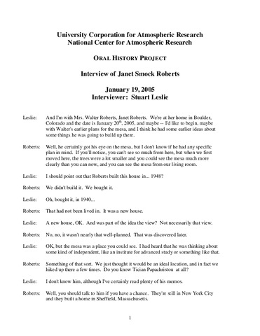 Transcript, Oral History Interview with Janet Roberts