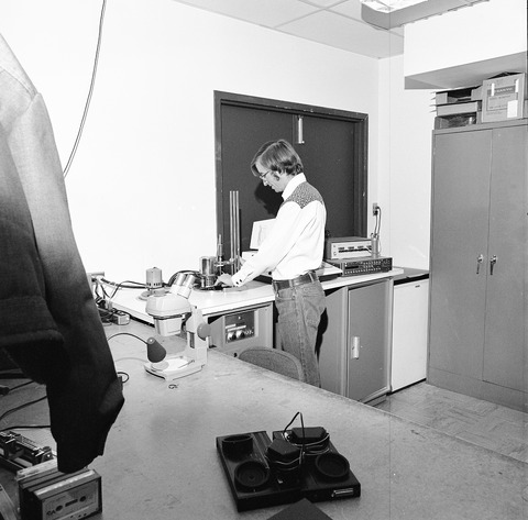 Calibration Lab, Room 254 man reading printout (5407-011)